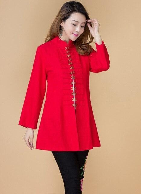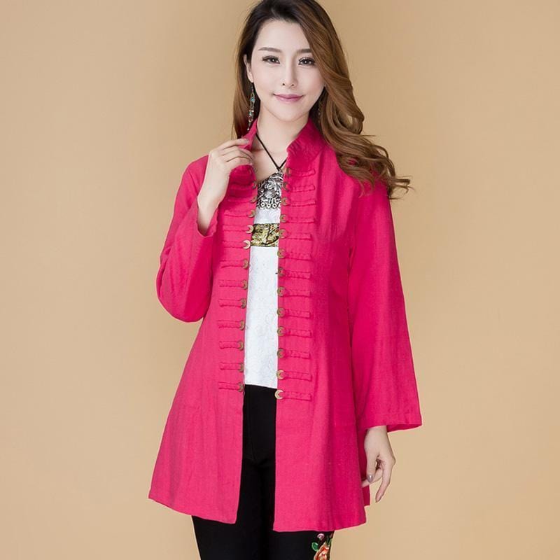 Ajoutez de la lumière et de la gaieté à votre vie avec cette veste chinoise en coton pour femme ! Disponible en vert, rouge ou rose, sa couleur vibrante apportera une touche de contraste et d’éclat à votre tenue, tout en conservant une allure orientale grâce à son col Mao et ses fermetures de style chinois.