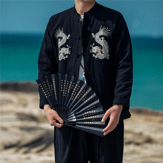 Magnifique Veste Chinoise pour Homme avec un motif de Dragon Blanc majestueux