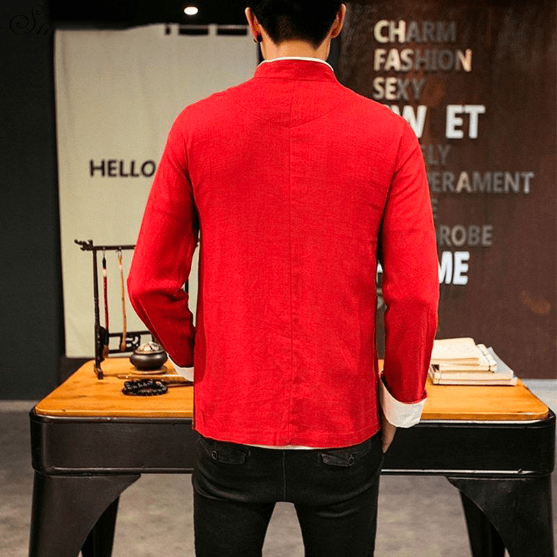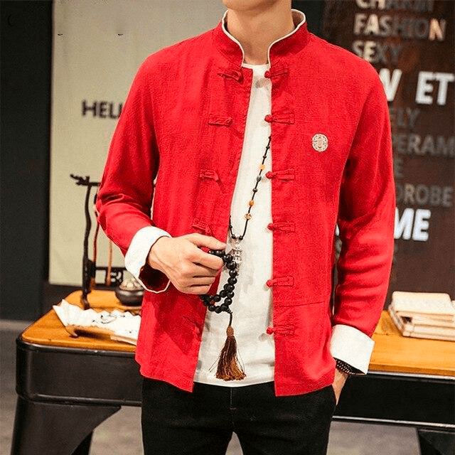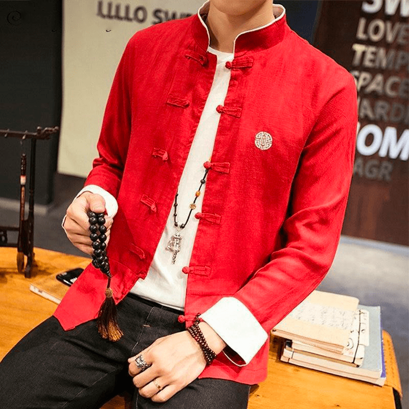 Cette Veste pour Homme de style Chinois est un véritable atout pour votre tenue ! Avec sa couleur rouge ou noire, elle s’accorde avec élégance à votre look. Vous serez charmé par ses détails exceptionnels : un col Mao traditionnel, un tissu léger et confortable en coton et lin, des fermetures chinoises, des revers blancs pour créer un contraste, et un liseré blanc sur le col pour une touche de sobriété et d’élégance ! Le symbole chinois porte-bonheur sur l’avant en fait une veste unique et préférée !